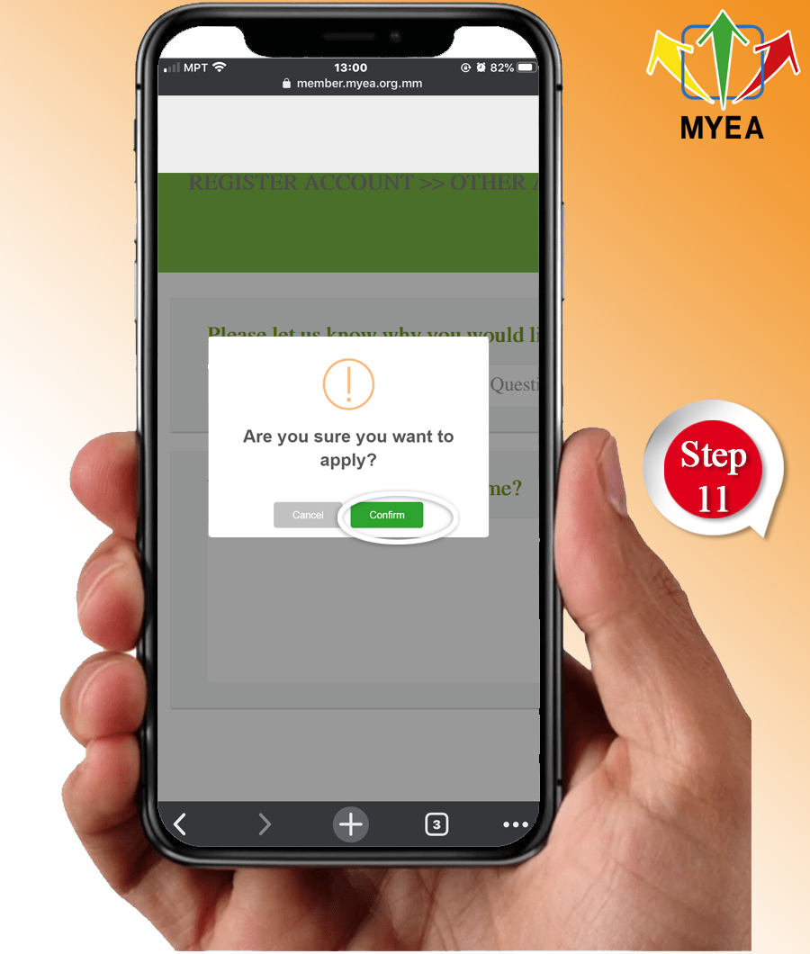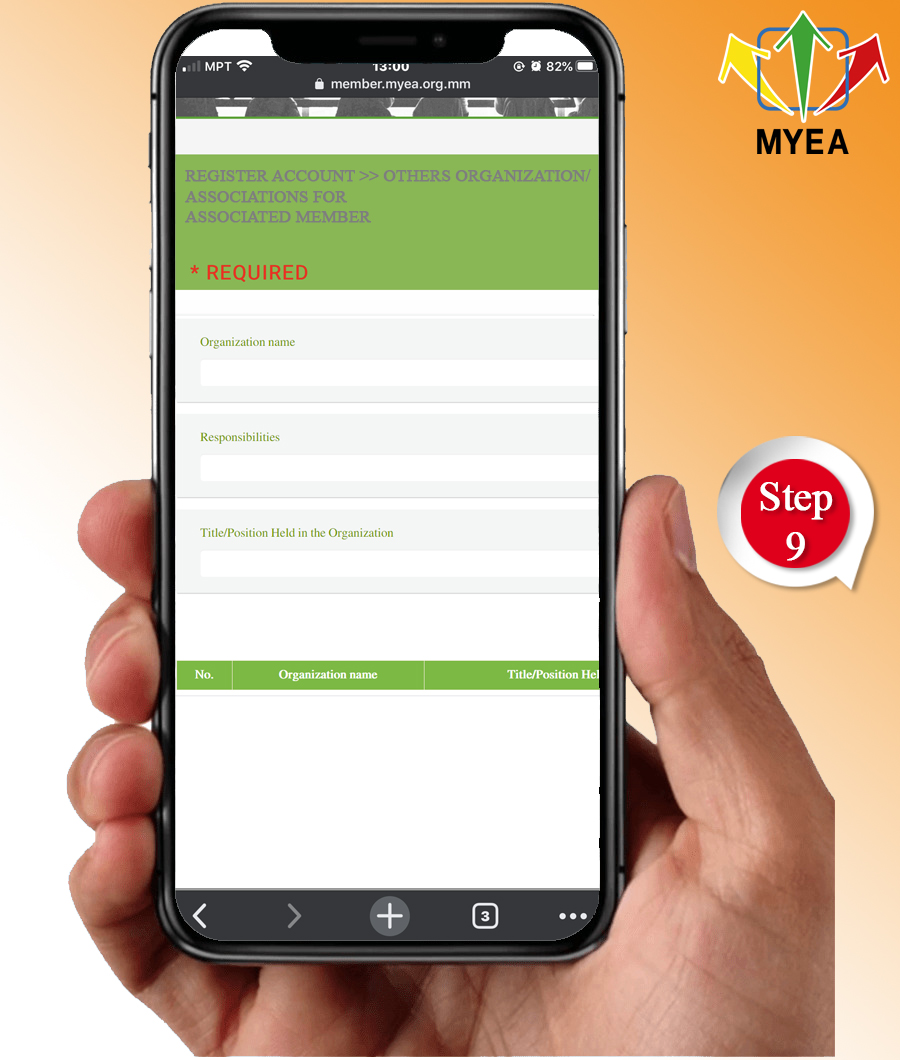 - Step (10) You will be questioned the reason and assumptions to be a member of MYEA.